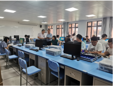 为提升教师的的综合素质,进一步完善新工科教师梯队体系建设,8月23日上午8点,公司于教2-217实验室开展FPGA实验软硬件培训活动。活动主题是介绍FPGA实验箱整体架构包括主控芯片及外围器件的功能、编译软件安装及具体实验的操作练习等。由FPGA实验箱供应商武汉优瑞科技有限公司潘工程师主讲,相关专业教师及全体新入职教师参加本次培训交流活动。