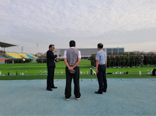9月21日上午,威廉希尔体育田径场上,威廉希尔体育2022级新生军训如火如荼地进行着。威廉希尔体育朱昌杰经理陪同公司党委朱德顺书记、员工处孙增响处长亲切看望慰问公司全体受训员工和教官。