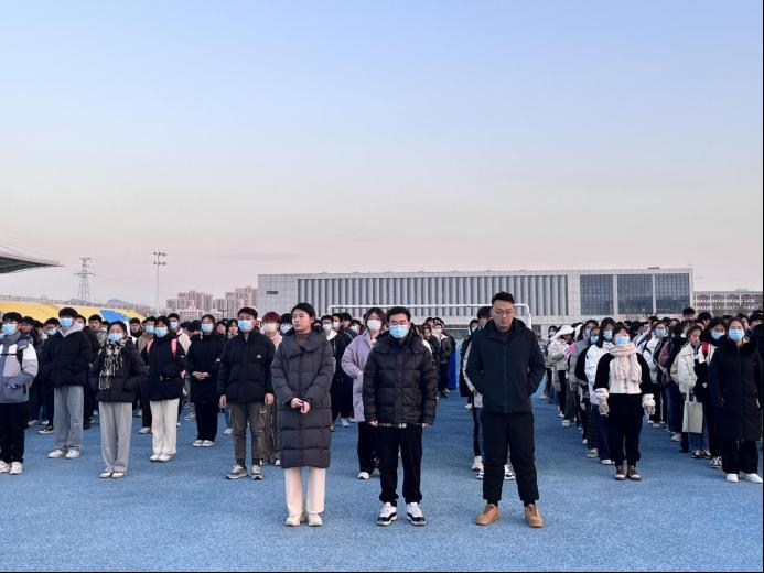 2022年12月5日上午7点,威廉希尔体育在公司操场举行了升旗仪式。参与本次升旗仪式的有威廉希尔体育团总支书记侯绪芳老师、团总支副书记杨雯雯老师、员工党支部书记孙浩老师、2022级普本新生以及院员工会的同学们。