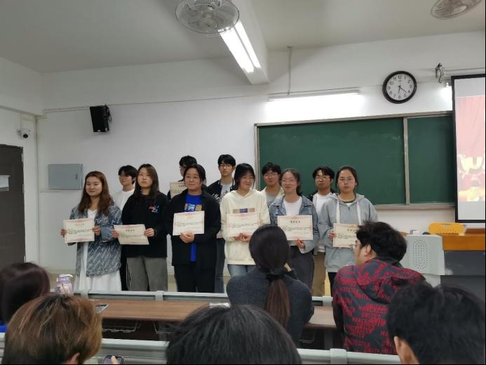 受到公司表彰的优秀团员有赵雨露、黄艺蕾、王程瑞、郭志茹、杜奥奥、李亚南、胡龙龙、李亚楠、苗维、刘宝天、王腾达、张学成、张远程、梁修业、刘子祎、谢捷、刘紫君、刘关祥、张杰、时宇彤、袁铖、朱昊、周佳雪、张祥、陈可怡、胡超、王阳群、聂雅楠、谢正宇、晏晓超、徐娜娜。由孙浩老师、杨雯雯老师为获奖同学颁奖。