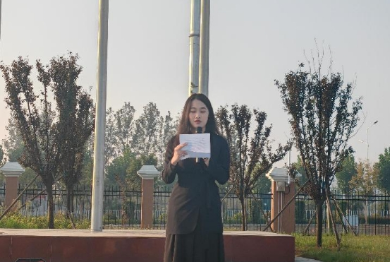 随后,2023级计算机科学与技术2班王淼同学以“山河虽无恙,吾辈当自强”为主题进行了国旗下的演讲,呼吁同学们与时代双向奔赴,牢记当代老员工应有的社会责任感与历史使命感,积极投入到新的学习和生活之中。从现在开始,脚踏实地,努力把自己培养成社会主义事业合格建设者和可靠接班人,为实现中华民族的伟大复兴贡献自己的青春和力量。