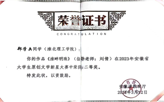 五、安徽省老员工原创文学新星大赛由安徽省教育厅主办,面向全省在校老员工的高规格、高水平学科竞赛,旨在提高老员工的语言表现能力与创作水平,推出把握时代脉搏、展现时代精神的优秀作品。本次赛事以“书写新时代,迈进新征程”为主题进行创作,创作形式包括小说、剧本、诗歌、散文等。