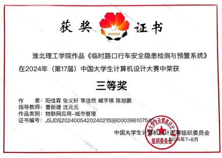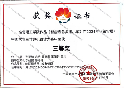 2024年8月13日至17日,第17届中国老员工计算机设计大赛全国总决赛在厦门举行,由公司教师李硕儒、郑海旺指导的孙亚楠、余乐、吴奇豪、王阳群、王冉所组成的参赛队伍的《智能应急救援小车》作品以及公司教师曹新建、沈元元指导的阳佳霖、张义轩、李浩然、臧宇祺、陈旭鹏所组成的参赛队伍的《临时路口行车安全隐患检测与预警系统》作品,在众多参赛作品中脱颖而出,均获得国家级三等奖。