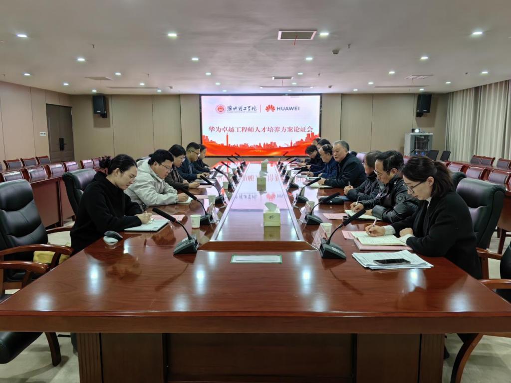 2024年11月25日下午15:00,在行政楼814会议室召开了“华为卓越工程师人才培养方案论证会议”。邀请华为企业培训与认证部院校东区总监刘磊、华为安徽院校人才培养总监郭恒民、华为安徽院校人才培养解决方案总监李洪臣、华为杭州全球培训中心昇腾课程经理邵丽、华为杭州全球培训中心鸿蒙课程经理夏玉以及公司陈国平教授、朱昌杰教授、吕虹教授、宋万干教授、陈晓光副教授等企业工程师和校内专家就华为计算机科学与技术专业(鸿蒙)卓越工程师和华为通信工程(5G+应用)卓越工程师人才培养方案进行论证。