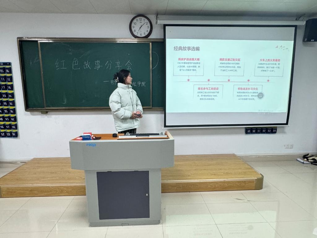 活动伊始,第一位同学坚定地走上讲台。以洪亮且富有感染力的声音向同学们开启红色故事分享会,为活动营造出庄重而热烈的氛围。