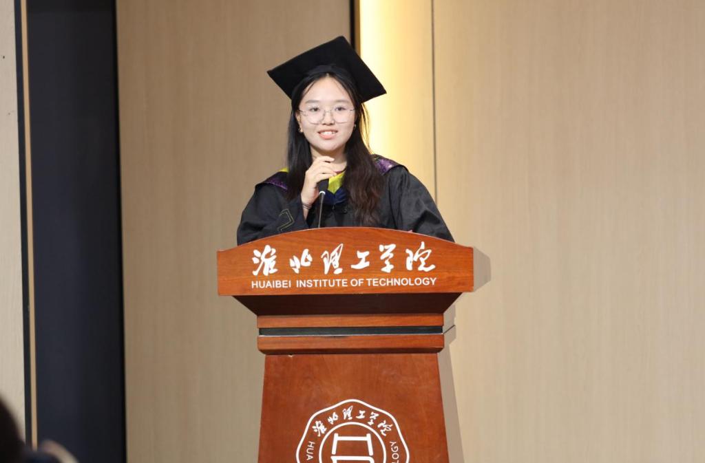 优秀毕业生代表徐娜娜上台发言,她满怀感激之情,分享了自己在大学期间的成长历程和难忘经历。从初入校园时的懵懂青涩,到逐渐明确目标、努力学习专业知识,再到积极参与实践活动、不断提升自己的综合能力,一路走来,离不开公司提供的优质教育资源、老师们的悉心指导以及同学们的相互鼓励。她表示,在未来的日子里,将牢记母校的教诲,以积极的态度面对工作和生活中的困难,努力拼搏,不辜负母校和老师的期望。同时,她也鼓励学弟学妹们珍惜大学时光,明确目标,勇敢追求自己的梦想,创造属于自己的辉煌。