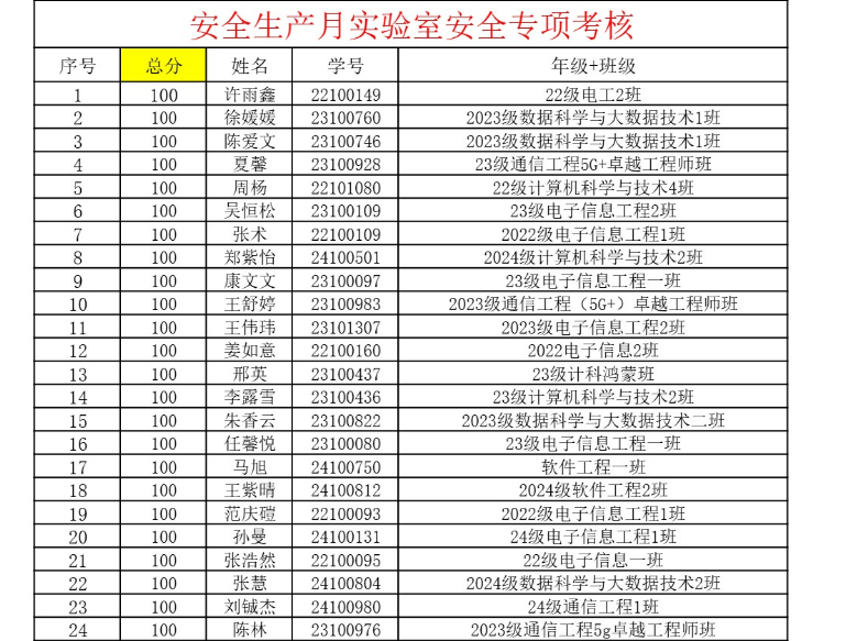 考核现场组织严谨有序,员工们全神贯注作答。在规定的截止时间前,共有64名同学顺利完成测试。最终成绩单显示:64名参测员工全员高分通过!其中24人斩获满分(100分),90分以上占比超过95%(61人),充分展现了公司常态化安全教育的扎实成效和学子过硬的安全素养。