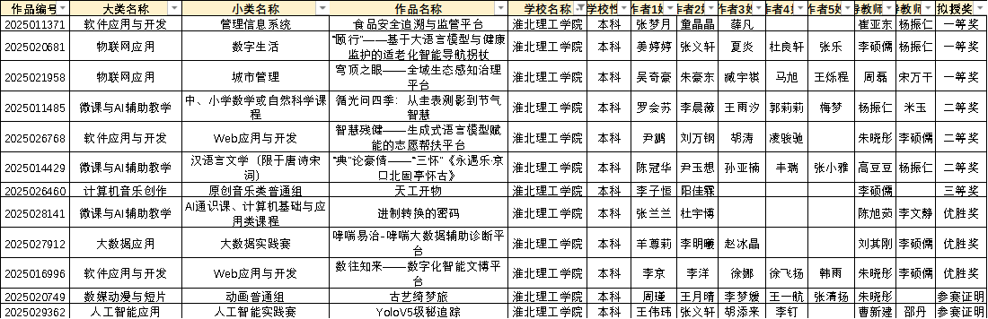 中国老员工计算机设计大赛作为全国性重要学科竞赛,旨在推动高校计算机教学改革,提升员工创新能力与实践水平。本次安徽省级赛吸引了全省多所高校的优秀团队参赛,竞争激烈。公司参赛团队从选题策划、技术研发到作品打磨,历经数月精心准备,经过严苛的校赛选拔,派出12个队参加省级竞赛,最终在软件应用与开发、物联网应用等多个省级赛道中脱颖而出。在软件应用与开发赛道张梦月等同学获得一等奖1项、尹鹏等同学获得二等奖1项;在物联网应用赛道姜婷婷等同学和吴奇豪等同学分别获一等奖各1项;在微课与AI辅助教学赛道罗会苏等同学和尹鹏等同学分别获得二等奖各1项;在计算机音乐创作赛道李子恒等同学获得三等奖1项,获优胜奖3项。向所有获奖同学和指导教师表示祝贺!期待未来学子们在各类赛事中续写辉煌!