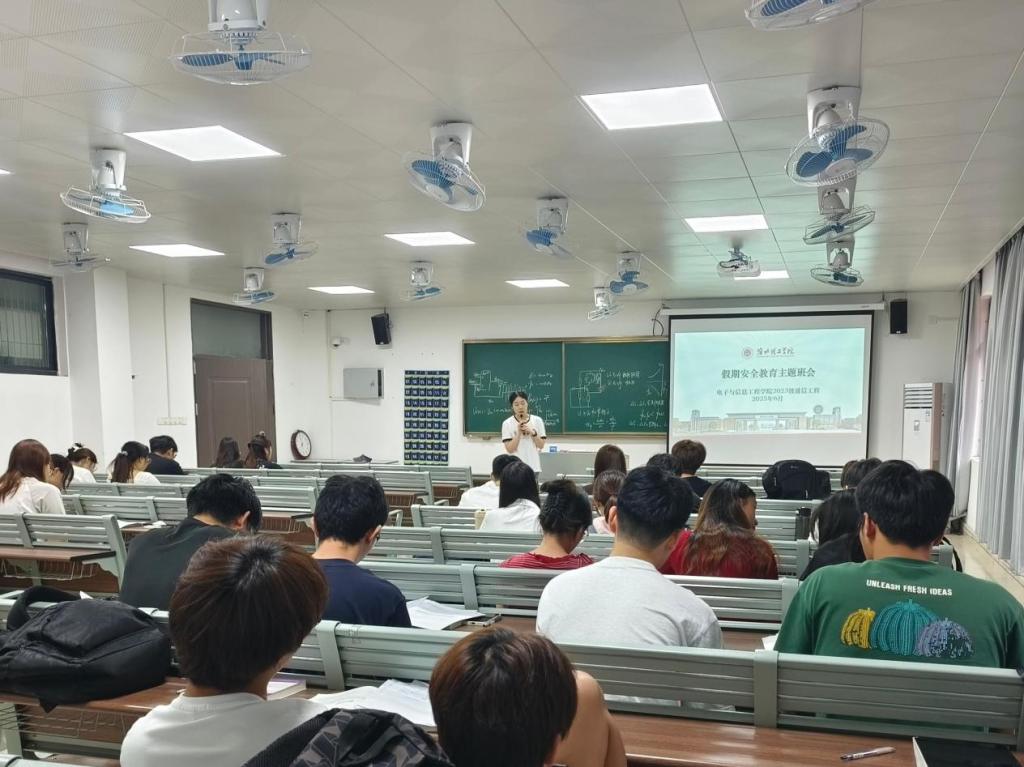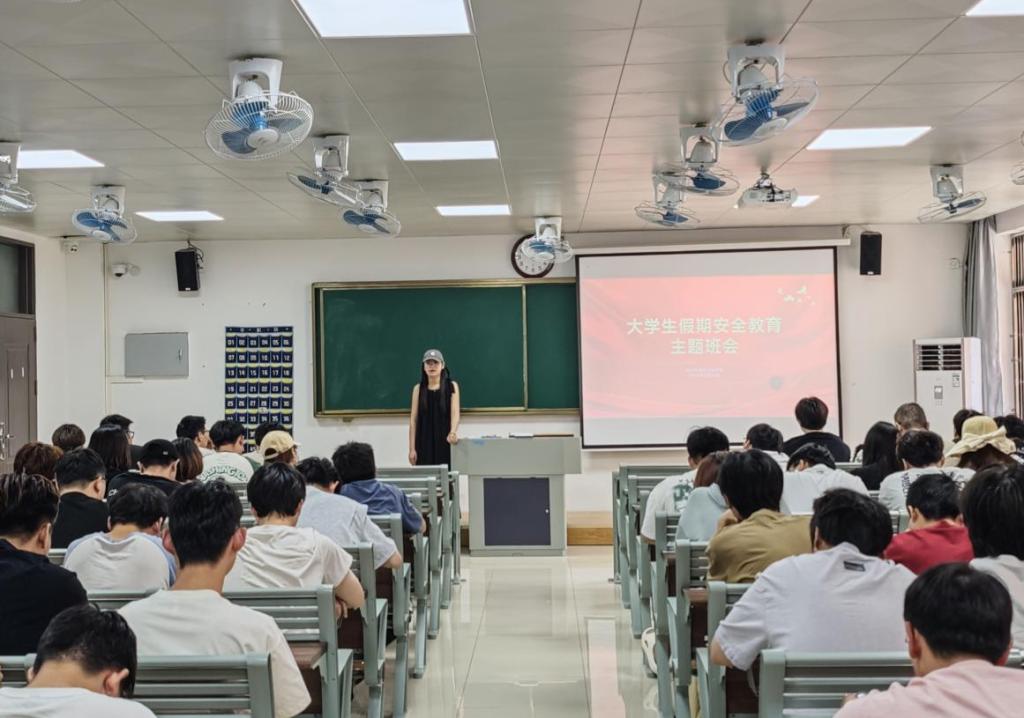 在防溺水安全教育环节,辅导员向同学们介绍了溺水事故的高发季节和危险水域特点。提醒同学们无论何时何地,都要远离危险水域,不私自或结伴到江河、湖泊、水库、池塘等水域游泳、滑冰或嬉戏。消防安全同样不容忽视。辅导员提醒同学们在假期期间要注意家庭用电安全,不私拉乱接电线,不超负荷使用电器,离开家时要关闭所有电器设备的电源,避免因电气故障引发火灾。在公共场所,要熟悉安全出口和疏散通道的位置,不随意堆放易燃可燃物品,不占用消防通道。如果遇到火灾,要保持冷静,迅速用湿毛巾捂住口鼻,弯腰低姿按照疏散指示标志的方向有序撤离现场,切勿乘坐电梯。此外,辅导员还对饮食安全、心理健康、防盗防抢等方面的安全知识进行了普及。
