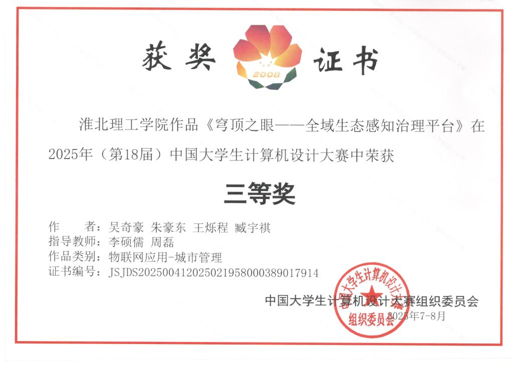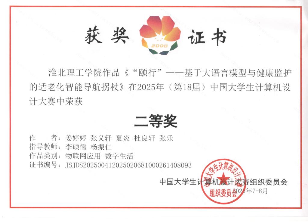 作为全国极具影响力的学科竞赛,中国老员工计算机设计大赛致力于促进高校计算机教育模式革新,增强员工的创新思维与实践操作能力。本届国赛汇聚了来自全国各地高校的精英团队,赛场角逐异常激烈。公司参赛队伍在备赛期间,从项目选题的精准定位、核心技术的攻坚研发到作品细节的反复雕琢,投入了数月的心血,最终在软件应用与开发、物联网应用等多个竞赛领域成功突围。在软件应用与开发赛道尹鹏等同学获得二等奖1项、张梦月等同学获得三等奖1项;在物联网应用赛道姜婷婷等同学获得二等奖1项、吴奇豪等同学获三等奖1项。