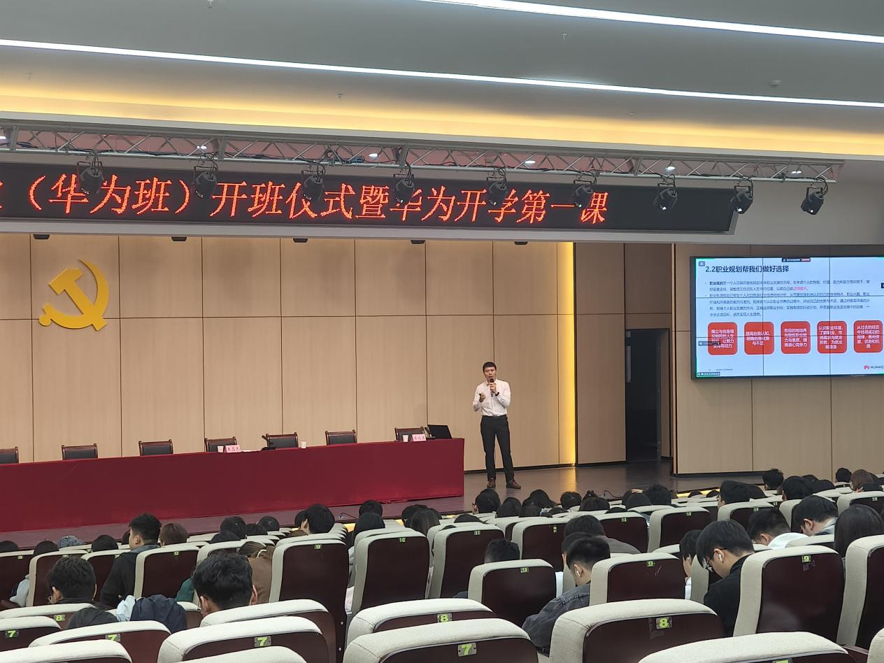开班仪式后,李雨涛以“敢问路在何方——华为文化与职业规划” 为题授课,围绕三方面展开:一是ICT专业就业简析,指出行业人才缺口及核心岗位需求,强调华为职业认证的重要性;二是职业规划建议,提出“明确路径—自我探索—行动复盘”的规划步骤,建议员工平衡学习实践、夯实基础;三是华为文化解读,阐释“以客户为中心、以奋斗者为本”等核心价值观,分享“之字形发展”职业路径,鼓励员工以奋斗姿态成长。