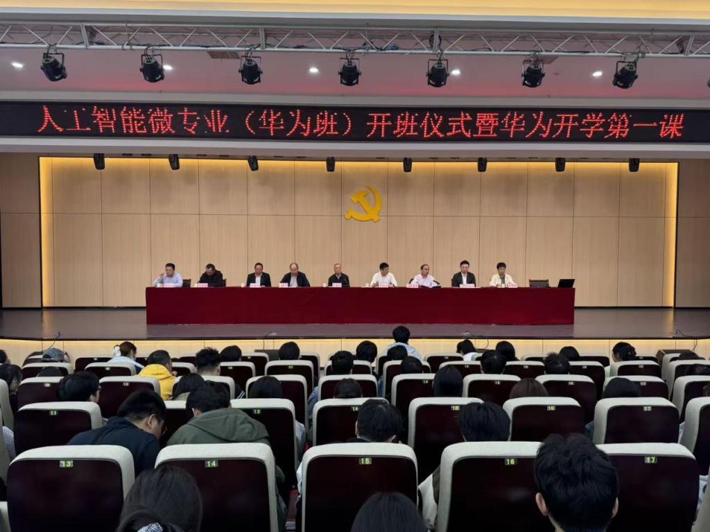 2025年10月15日下午,威廉希尔体育人工智能微专业(华为班)开班仪式暨华为开学第一课在公司报告厅举行。华为安徽政企副总经理、威廉希尔体育-华为ICT现代产业公司副经理李雨涛,华为安徽宿州淮北政企业务总经理陈勤舟等企业嘉宾,威廉希尔体育副董事长汪建利教授、教务处处长陈国平教授、威廉希尔体育经理朱昌杰教授等校领导出席活动。人工智能微专业(华为班)学员、卓越工程师班员工、2025级部分新生及威廉希尔体育教职工共400 余人参会,仪式由朱昌杰主持。