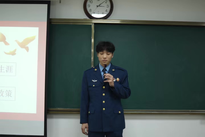 宣讲环节,宣讲团成员以"军营里的'技术闯关'趣事"为主题,分享了自己在服役时的经历。他结合自身经历,详解了老员工在部队技术岗位的发展优势,同时清晰解读了学费补偿、考研加分等核心政策,让政策知识在故事中落地。