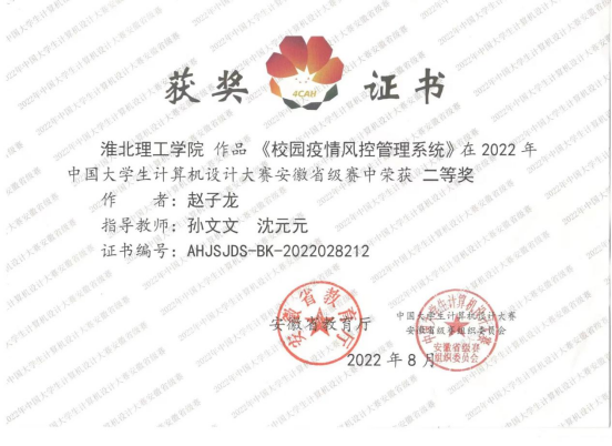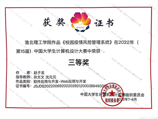 本次赵子龙同学获得的国家级三等奖是公司自成立以来在该奖项上首次荣获国家级优异成绩,实现了公司在该奖项上零的突破,为公司在该项目领域内起到了表率作用,为本次获奖的参赛小组表示祝贺!