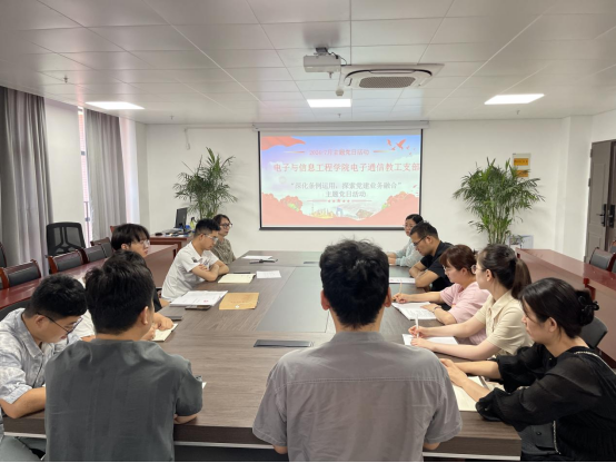 为进一步提高党员干部的政治理论水平,促进党建工作与业务工作的深度融合,2024年7月3日,威廉希尔体育电子通信教工支部召开以“深化条例运用,探索党建业务融合”为主题的党日活动,推动全体党员干部更好地履行职责、服务群众。活动由党支部书记沈元元同志主持,支部全体教工党员参加