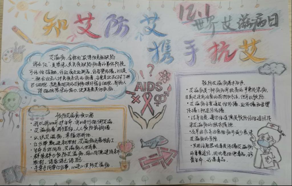 经过几天的精心制作,一幅幅手抄报作品被绘制出来。这些作品充分展示了同学们在本次防艾活动中的收获,不仅锻炼了他们的排版、抄写、美工、收集材料等多方面的综合能力,更提高了他们对艾滋病的认识、明确了老员工在抗击艾滋病中的作用和责任。