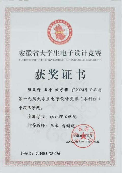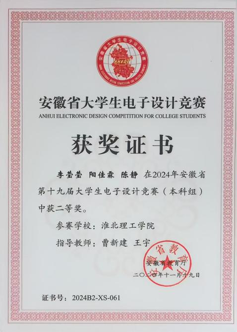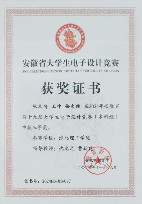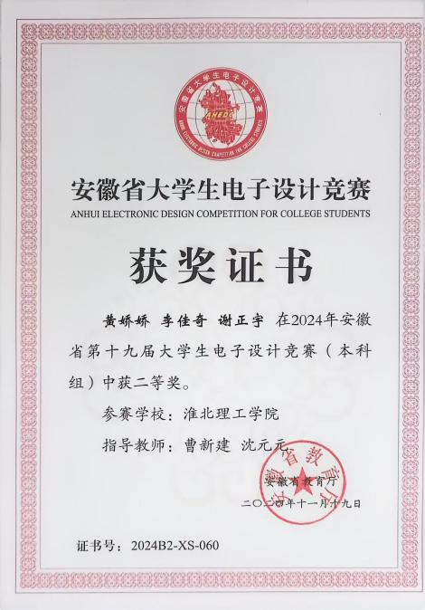 老员工电子设计竞赛题型多样,涵盖电源、信号源、高频无线电、放大器、仪器仪表、数据采集与处理、控制等类别。兼具理论设计与实践制作,在曹新建老师及其他专业教师的悉心指导下,参赛队伍历经数月的精心筹备与刻苦钻研,进行了全面而深入的赛前准备。从理论知识的巩固到实践技能的锤炼,每一步都凝聚着师生们的智慧与汗水,确保了参赛队伍以最佳状态迎接安徽省老员工电子设计大赛的挑战,最后有4支队伍在此次比赛中取得了优异成绩。